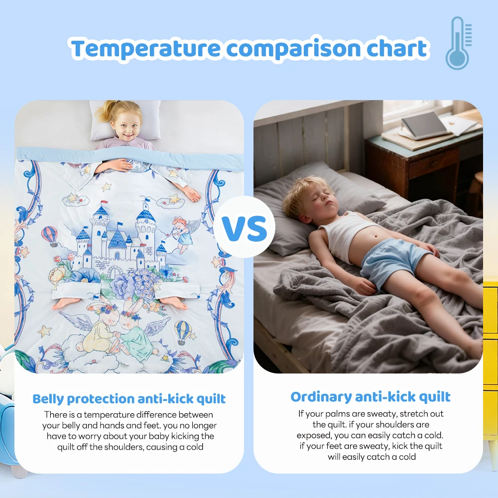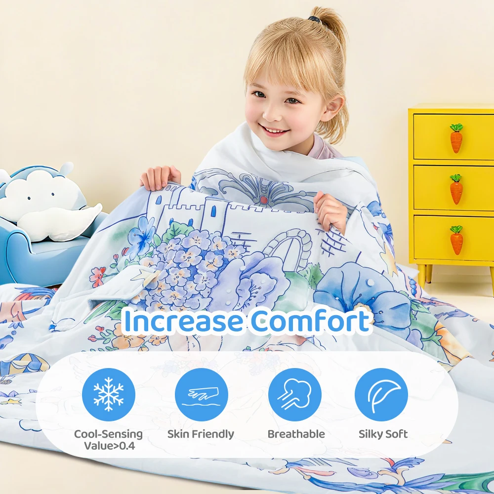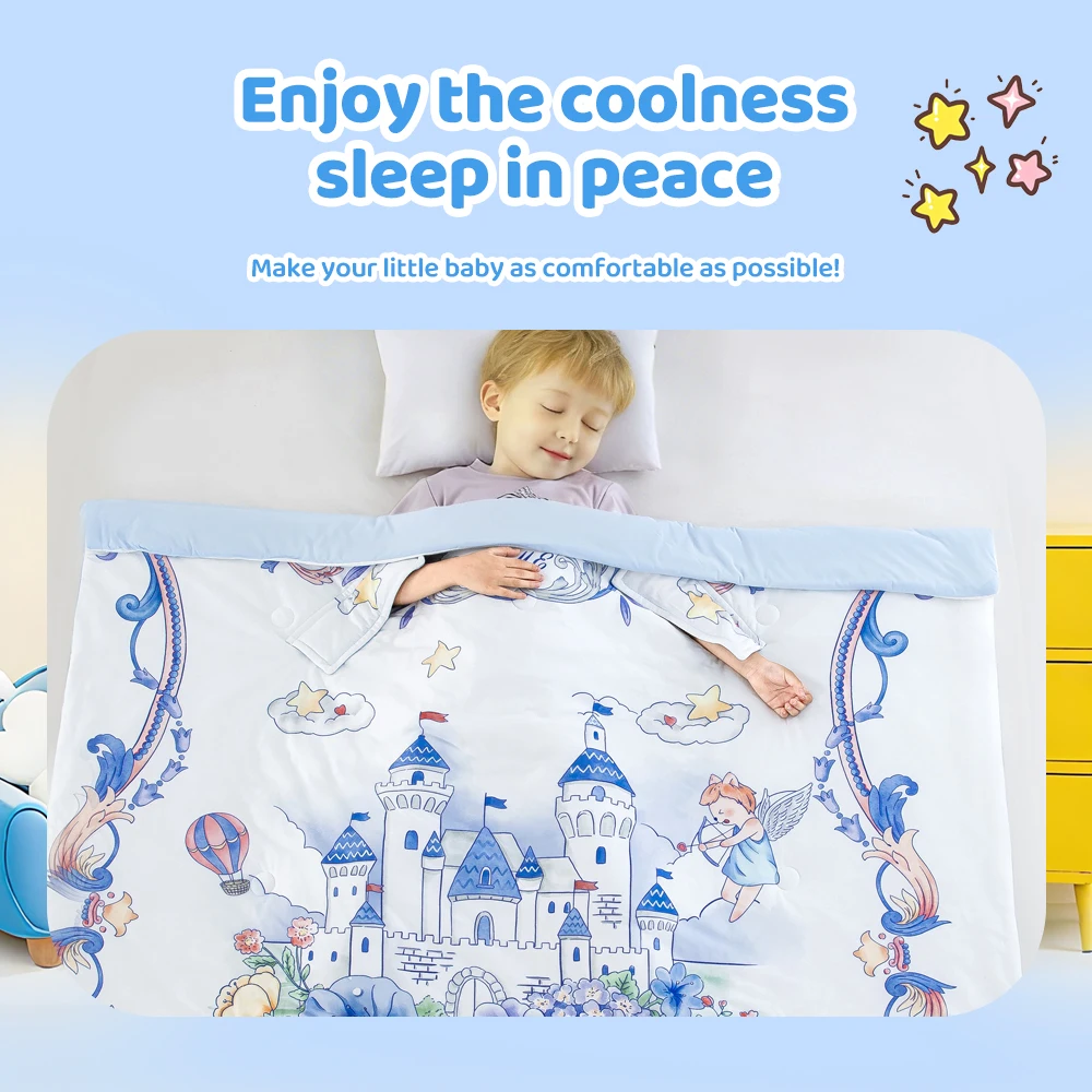 Luxury All-Season Breathable Children's Summer Cooling Blanket 4-Hole Anti-Kick Design with Printed Pattern for Hotels